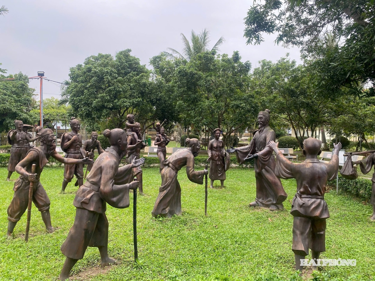 Quần thể tượng tái hiện cảnh Trạng Trình Nguyễn Bỉnh Khiêm khi rời chốn quan trường về quê, được nhân dân yêu mến, đón chào.