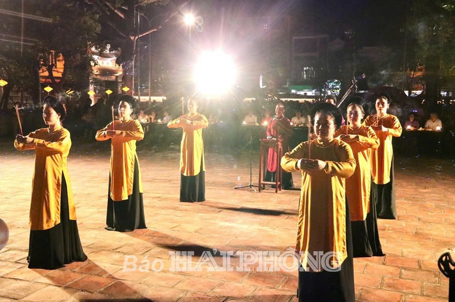 Tối 28-6, không phải bằng tiếng ồn náo nhiệt hay ánh đèn rực rỡ, đêm Hải Phòng bỗng lắng lại và sáng lên theo một cách khác. Giữa lòng phố, tại ngôi đình cổ hơn 300 năm tuổi - đình Hàng Kênh, ở phố Nguyễn Công Trứ (phường Lê Chân), tiếng trống, tiếng hát dân gian, ánh sáng 3D, làn hương trầm và cả hơi thở lịch sử quyện vào nhau tạo nên một không gian linh thiêng và cuốn hút. Đó là thời điểm tour đêm “Dấu thiêng Hàng Kênh” chính thức ra mắt công chúng. Tham gia vào không gian di sản, người xem được thưởng thức ngay từ những bước chân đầu vào khu vực hồ bán nguyệt trước cổng đình, nơi diễn ra hoạt động múa rối nước truyền thống với những tiết trò mang đậm chất dân gian. Di chuyển từ ngoài cổng vào sân đình, người dân, du khách được xem canh hát thờ cửa đình, một thể loại khó của nghệ thuật Ca trù - Di sản phi vật thể nhân loại cần được bảo vệ khẩn cấp còn được bảo tồn và phát huy hiệu quả tại Hải Phòng...