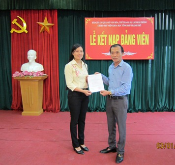 Căn cứ quyết định số 264 QĐ/ĐU, ngày 14 tháng 4 năm 2016 và quyết định số 119 NQ/ĐU, ngày 14 tháng 3 năm 2016 của Đảng ủy Khối các cơ quan thành phố về việc kết nạp Đảng viên và thực hiện nghị quyết của Đảng bộ Sở Văn hóa, Thể thao và Du lịch và nghị quyết Chi bộ Thư viện Khoa học Tổng hợp Hải Phòng nhiệm kỳ 2015-2020 về công tác xây dựng Đảng. Chiều ngày 28 - 4 - 2016, Thư viện Khoa học Tổng hợp Hải Phòng đã tổ chức lễ kết nạp Đảng viên Đảng cộng sản Việt Nam cho đoàn viên công đoàn, quần chúng ưu tú là đồng chí Lê Thị Nghĩa - Phó trưởng phòng Thư viện Cơ sở và trao quyết định Đảng viên chính thức cho đồng chí Bùi Thị Thu Thủy - Phó trưởng phòng Công tác Bạn đọc.