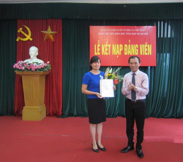 Bí thư Chi bộ, GĐ thư viện thay mặt Chi bộ Thư viện KHTH Hải Phòng chúc mừng đồng