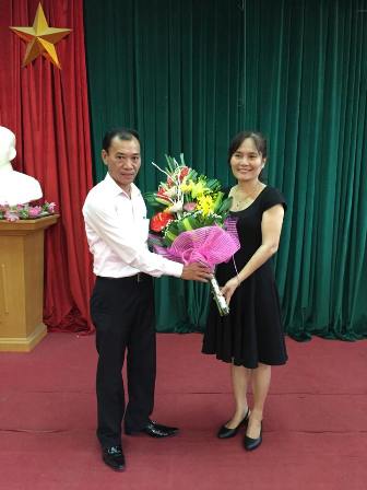 Ông Lê Hải Hà Phó trưởng Phòng Văn xã Sở tài chính tặng hoa Bà Phan Thị Thu Hương