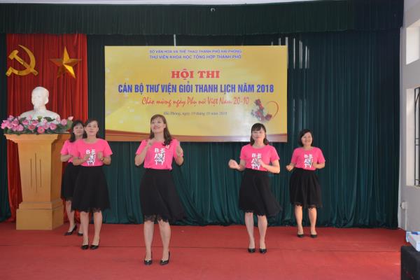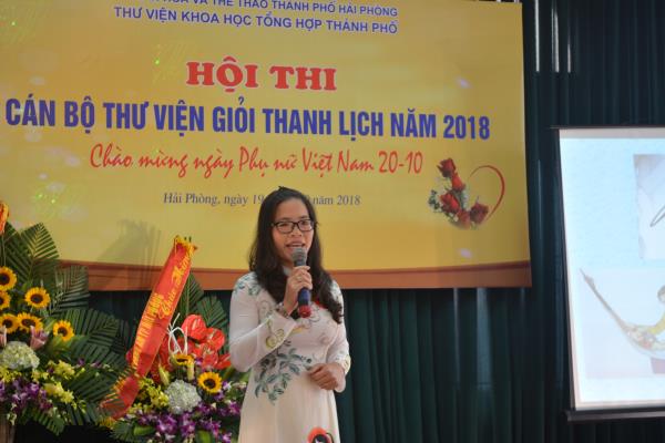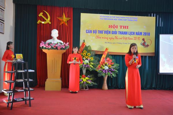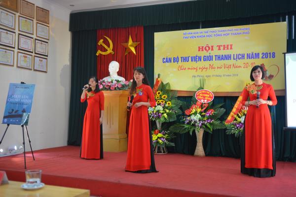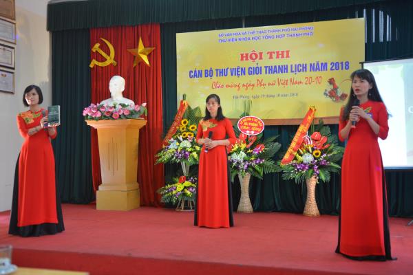 Trong không khí phấn khởi, tự hào kỷ niệm 88 năm ngày thành lập Hội Liên hiệp Phụ nữ Việt Nam (20/10/1930 - 20/10/2018) và thực hiện kế hoạch số 09/KH-TV ngày 28/9/2018 của Thư viện KHTH thành phố về việc tổ chức Hội thi cán bộ Thư viện giỏi năm 2018, sáng 19/10/2018, Thư viện KHTH Hải Phòng hân hoan tổ chức Liên hoan kỉ niệm ngày phụ nữ Việt Nam 20/10 và Hội thi cán bộ Thư viện giỏi thanh lịch năm 2018.