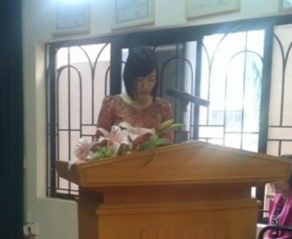 Bà Vũ Hồng Anh đọc diễn văn chào mừng.