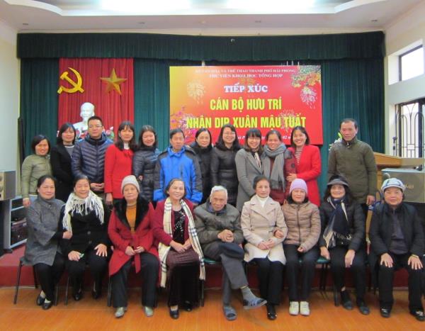 Trong không khí ấm ấp, hứng khởi mỗi độ tết đến, xuân về, chiều ngày 02/02/2018, Thư viện KHTH Hải Phòng đã có buổi tổ chức tiếp xúc cán bộ hưu trí qua các thời kỳ công tác. Tới dự có Ban Giám đốc, lãnh đạo các phòng chức năng Thư viện và các cán bộ hưu trí - những người đã cống hiến cho sự nghiệp phát triển chung ngành Thư viện Hải Phòng.