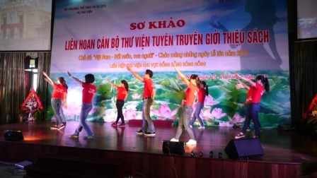 Đội tuyển thư viện KHTH thành phố Hải Phòng với 11 cán bộ viên chức đã ra mắt Hội thi bằng màn nhảy flash mod sôi động trên nền nhạc của ca khúc “Những trái tim Việt Nam”