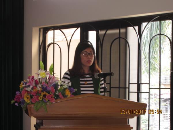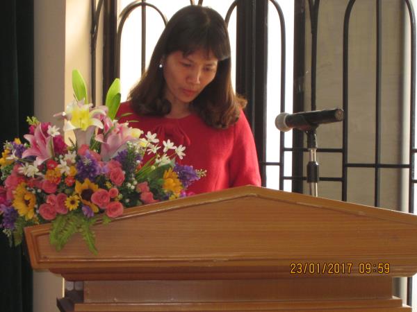 Bà Bùi Thị Tuyết Minh - Bí thư chi đoàn báo cáo tham luận