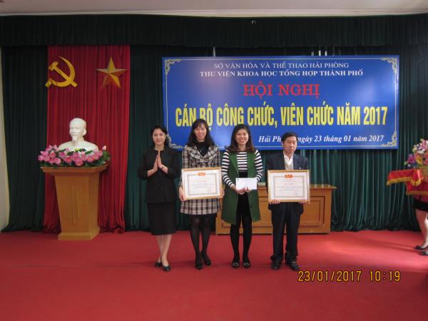 Ngày 23/01/2017, Thư viện Khoa học Tổng hợp Hải Phòng đã tổ chức Hội nghị Tổng kết Cán bộ, công chức, viên chức năm 2017. Hội nghị đã thảo luận, đánh giá trung thực, sâu sắc về những kết quả đạt được cũng như các tồn tại, hạn chế năm công tác vừa qua và đề ra phương hướng, nhiệm vụ năm 2017.