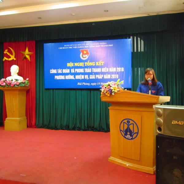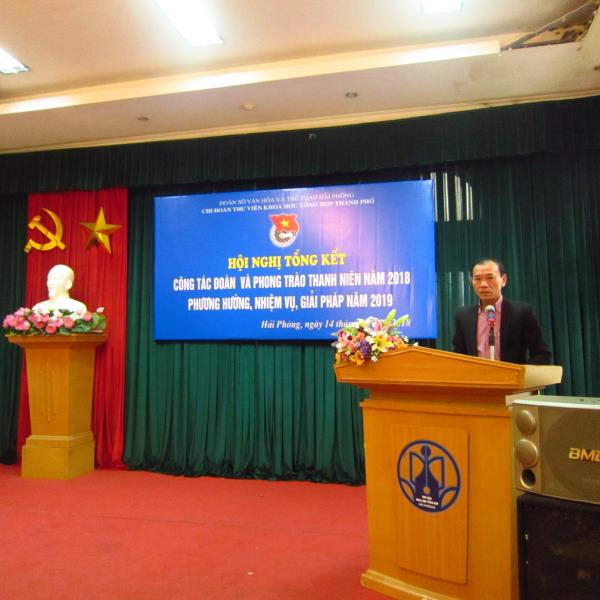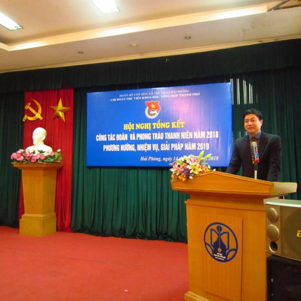 Chiều ngày 14/12/2018, tại Thư viện Khoa học Tổng hợp thành phố Hải Phòng diễn ra Hội nghị Tổng kết hoạt động đoàn thanh niên 2018 và phương hướng, nhiệm vụ, giải pháp năm 2019. Tới dự và chỉ đạo hội nghị có đồng chí Nguyễn Bá Việt Phương – Bí thư Ban Chấp hành Đoàn Sở Văn hóa và Thể thao; Đồng chí Vũ Văn Tuấn – Bí thư Chi bộ – Giám đốc Thư viện, các đồng chí trong Ban Giám đốc, Chủ tịch Công đoàn cùng toàn thể các đồng chí đoàn viên Chi đoàn.