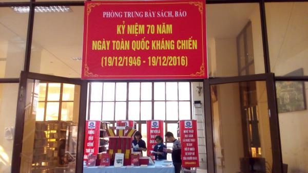 Hưởng ứng công tác tuyên truyền, giáo dục để khơi dậy niềm tự hào, tự tôn dân tộc; cổ vũ, động viên các tầng lớp nhân dân phát huy tinh thần đại đoàn kết dân tộc; thực hiện thắng lợi Nghị quyết Đại hội XII của Đảng, Thư viện Khoa học Tổng hợp Hải Phòng trân trọng giới thiệu đến bạn đọc hơn 200 tư liệu quý qua triển lãm “Kỷ niệm 70 năm ngày Toàn quốc kháng chiến (19/12/1946-19/12/2016” tại Phòng Bảo quản - Di sản Văn hoá Thành văn Hải Phòng .
