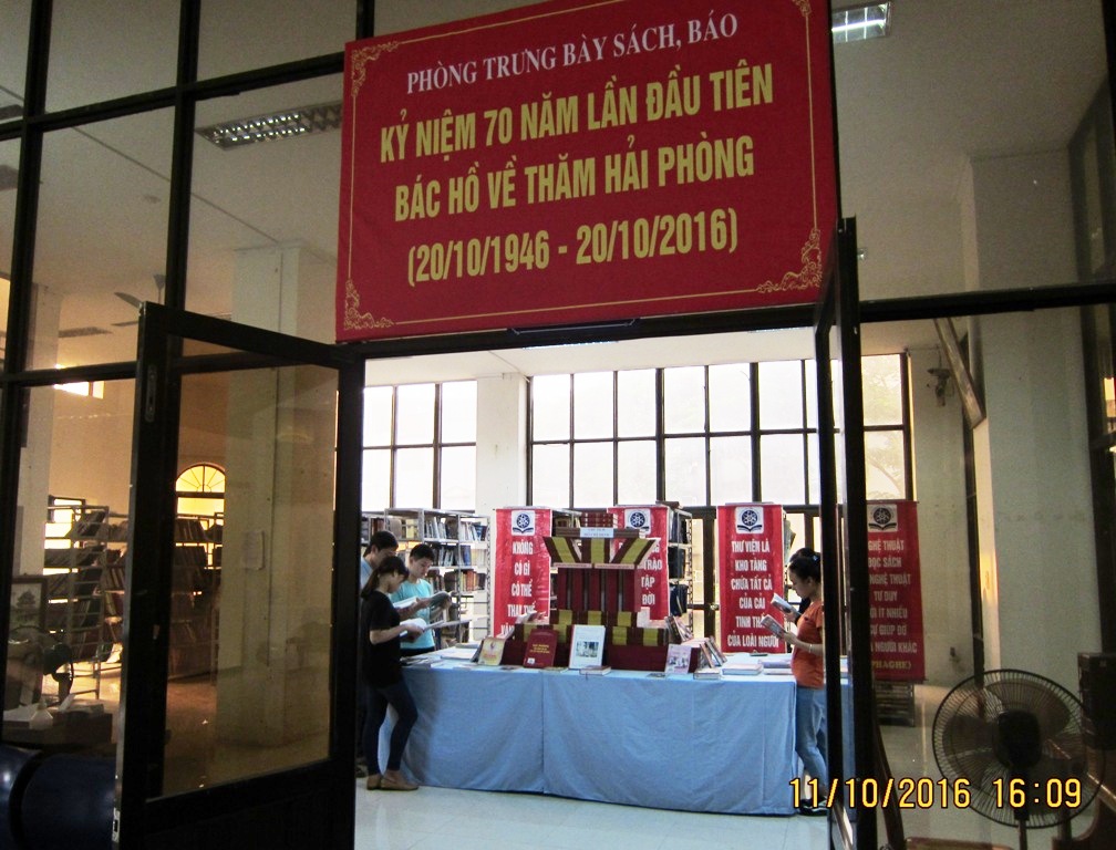 Tại Thư viện Khoa học Tổng hợp Hải Phòng, từ ngày 11/10/2016, trên 500 tư liệu bao gồm sách, báo, tranh ảnh viết và ghi dấu ấn về con người, sự nghiệp cũng như những tình cảm thiêng liêng của Hồ Mính Minh đối với nhân dân Hải Phòng và tình cảm của người con đất Cảng hướng về Bác được giới thiệu đến bạn đọc qua phòng trưng bày sách, báo “Kỷ niệm 70 năm lần đầu tiên Bác Hồ về thăm Hải Phòng (20/10/1946-20/10/2016)”. Triển lãm đã thu hút đông đảo bạn đọc tham gia.