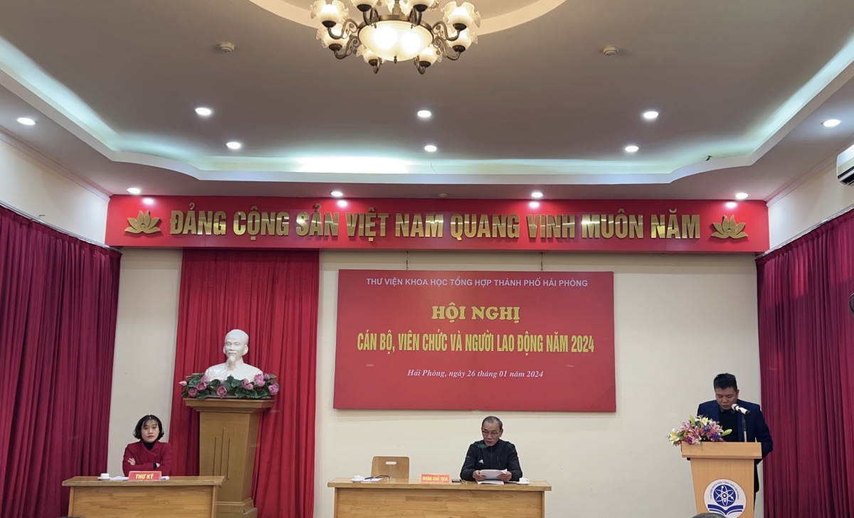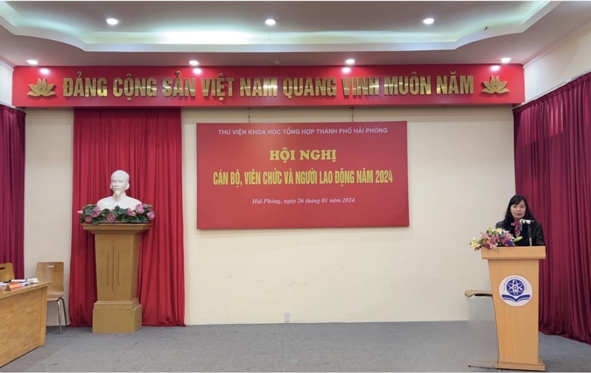 Chiều ngày 26/01/2024, Thư viện Khoa học Tổng hợp Hải Phòng đã tổ chức Hội nghị Cán bộ, công chức, viên chức và người lao động. Thông qua hội nghị nhằm đánh giá đúng kết quả thực hiện nhiệm vụ chính trị của đơn vị năm 2023; Xây dựng kế hoạch, bàn giải pháp thực hiện chỉ tiêu, nhiệm vụ phù hợp với yêu cầu cụ thể của đơn vị trong năm 2024.